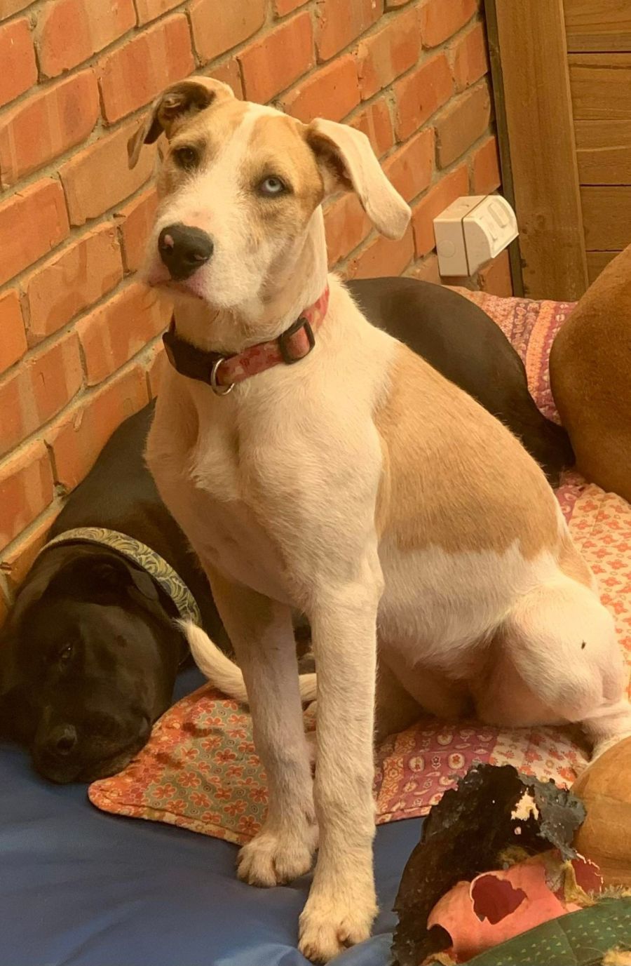 Bella is still a little fearful of doggo friends on walks, however absolutely loves her foster siblings. We would love someone willing to assist her with further training to help her overcome this fear and continue her leash training.
