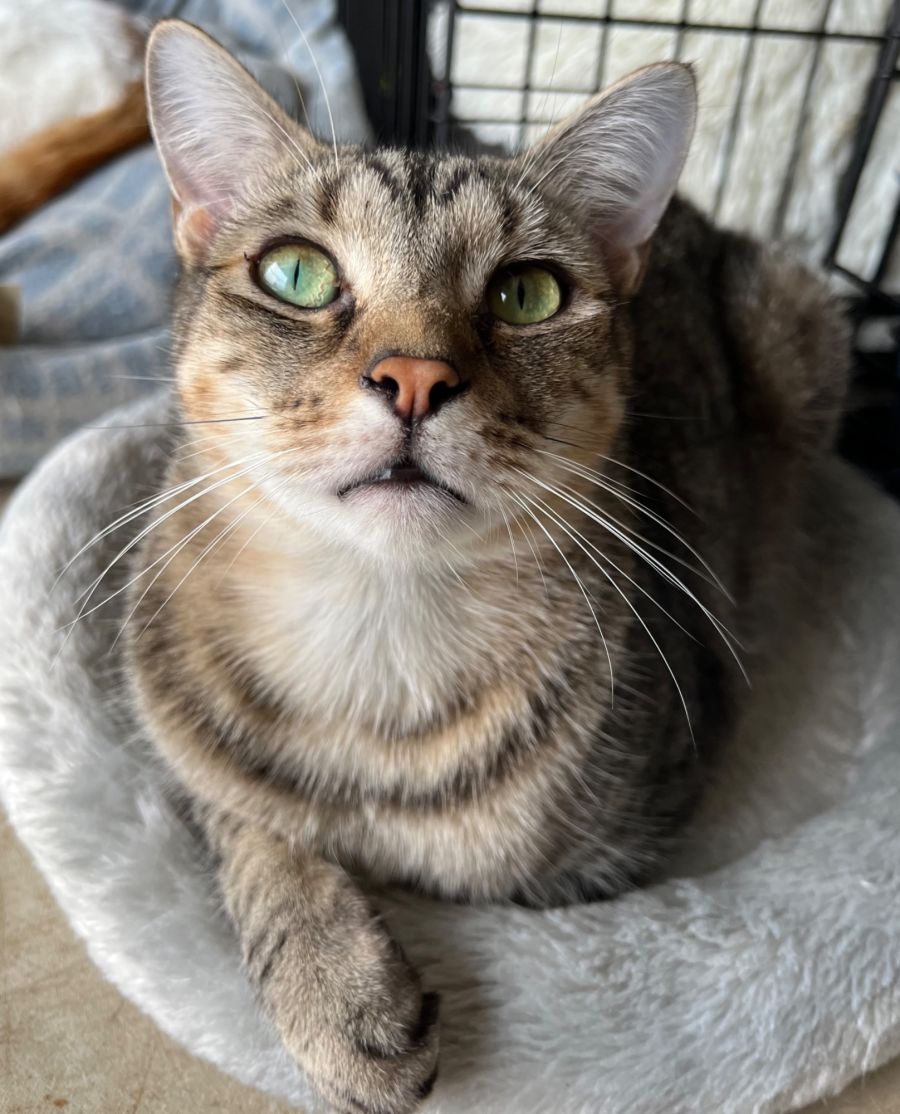As the pictures suggest, Gizmo is the star of the show! He would be perfect for a family that wants constant entertainment, in the form of the one-cat show, Gizmo. There will never be a dull moment with this hysterical boy! He takes his shows seriously, and can find less dedicated cats annoying, so he may be just fine as a single cat (or ok with a cat that can keep up). If you think Gizmo would be a match please contact Elizabeth
