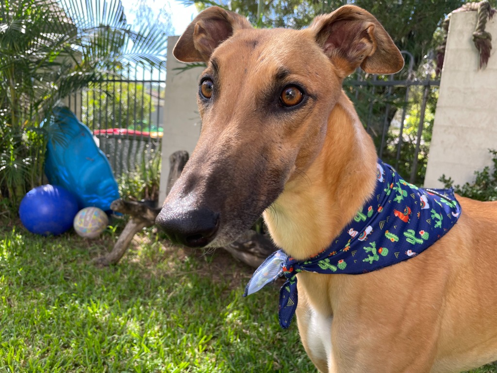 Alby is a beautiful, large greyhound. Very sweet-natured, and while he does enjoy outside time, he is not overly energetic. He is looking for a nice home to call his own, with a family able to provide lots of snuggles.