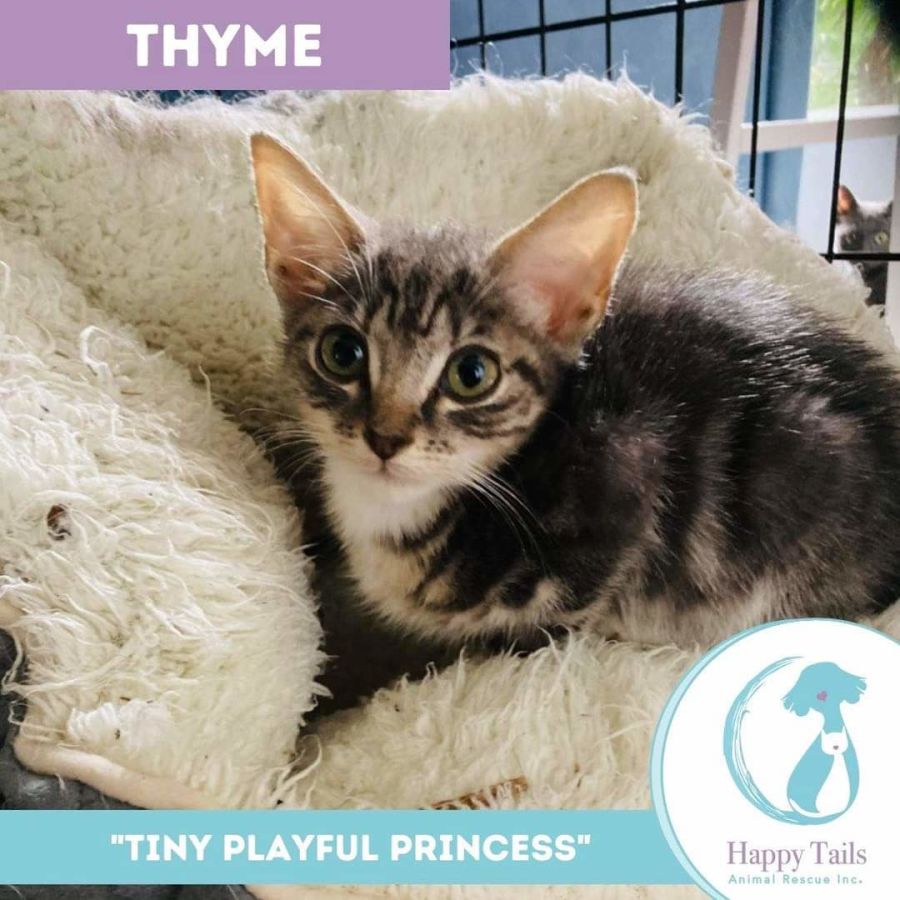 Thyme is a social butterfly who loves the attention of dogs, big and small. She loves to play with their fluffy tails and share toys with them. When its nap time Thyme is often found curled up in amongst the dogs in bed.