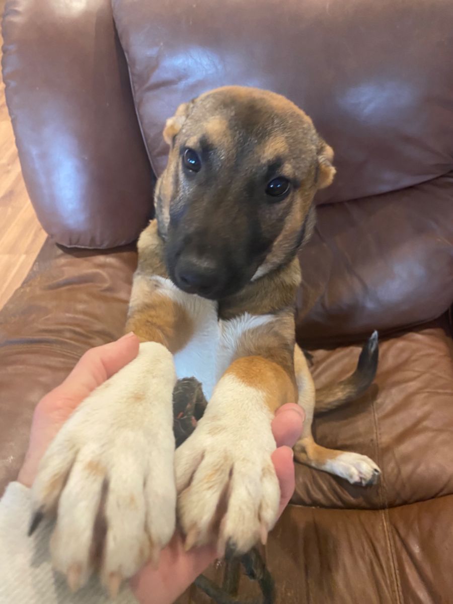 He loves to chase the hose , is ok in the car , super playful with other dogs not yet house trained though