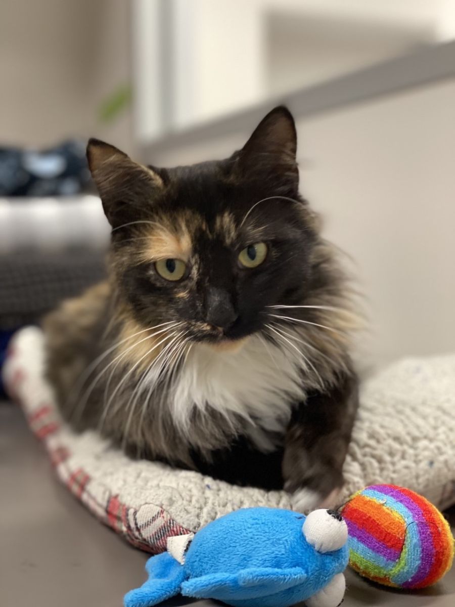 Her favourite things to do are roll around for belly scratches, she loves getting brushed and pet, and she loves her snacks and afternoon siestas.
