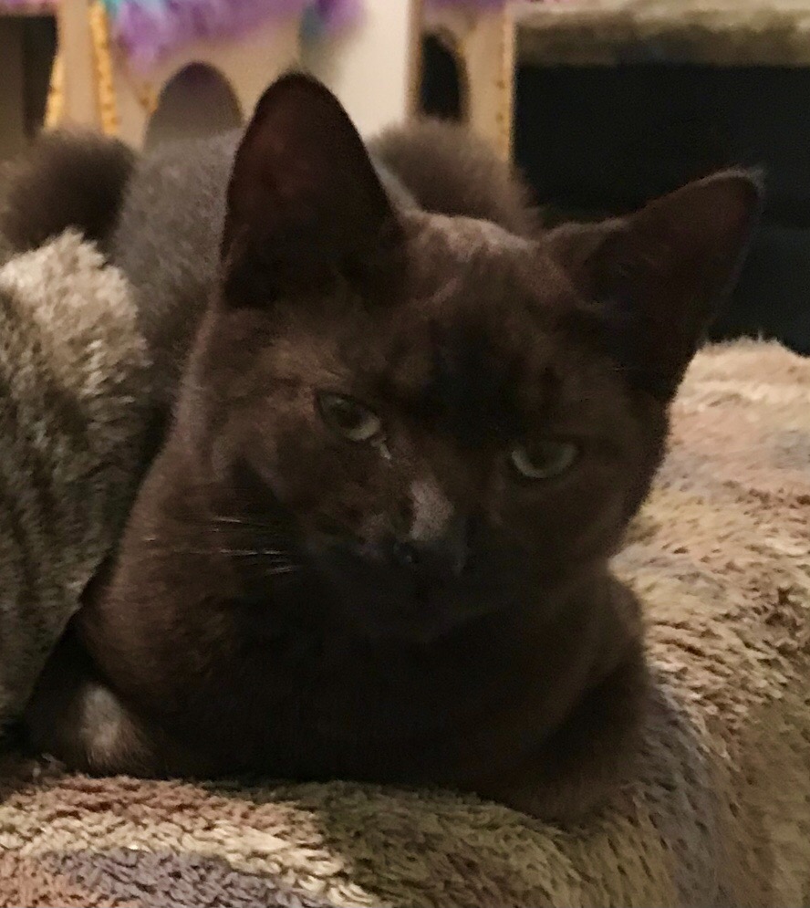 His purrsonality is as gorgeous as his good looks. Party Pie loves to curl up and sleep with his humans at night, hangs out and plays with his friend Shadow Man and any other cats. Not tested with dogs, but we think he'd get along with a gentle cat friendly dog. Ok with quiet gentle children, in fact he'd be an ideal companion for a child that needs an emotional support cat.