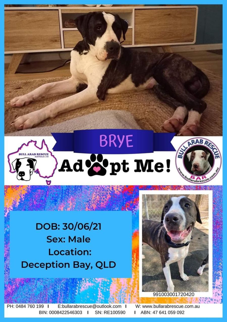 If you would like Brye to join your family, please email bullarabrescue@outlook.com for an adoption application form