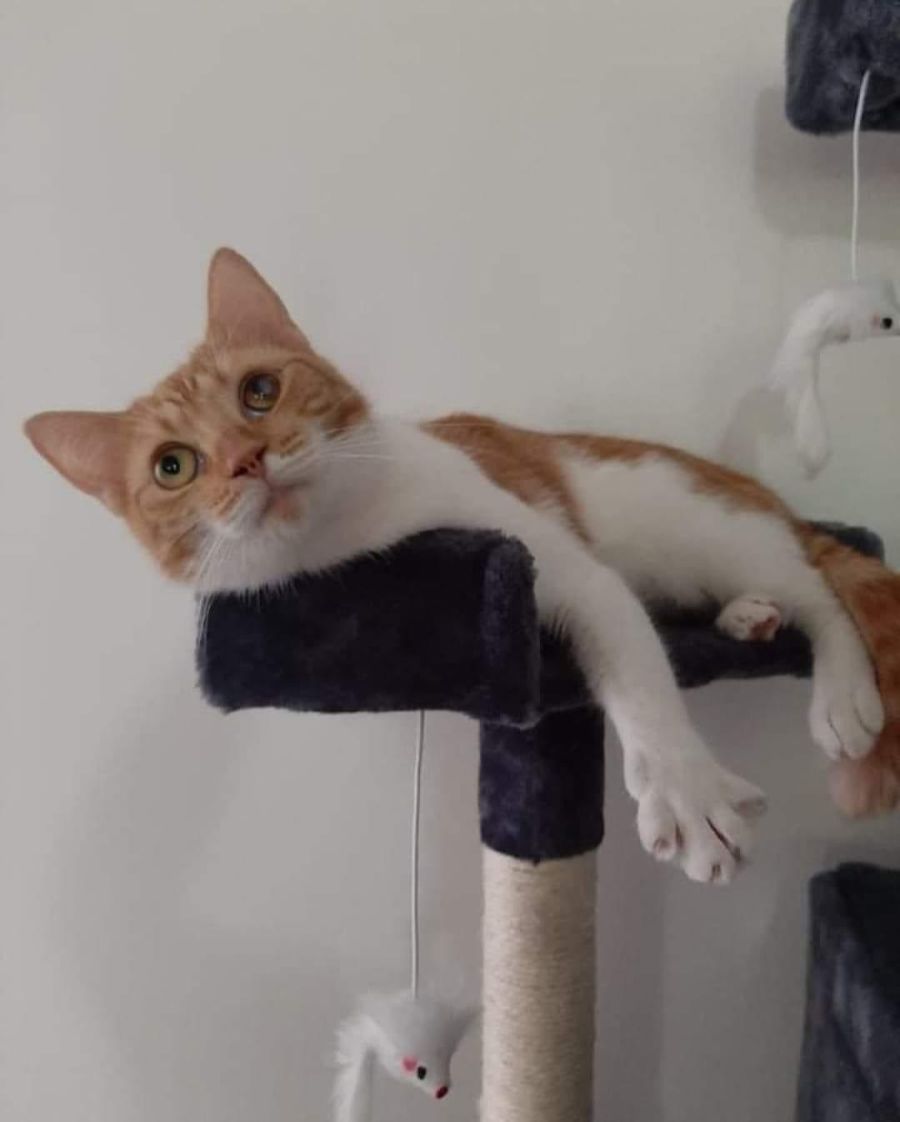She is shy when meeting people for the first time but once she knows you she will be cuddling with you whenever you sit down on the couch. She loves belly pats and holding hands. She is good at using her scratching post and rarely scratches beds or couches. She is fully toilet trained. She is a very chatty lady and will say hello whenever she sees you 🤣