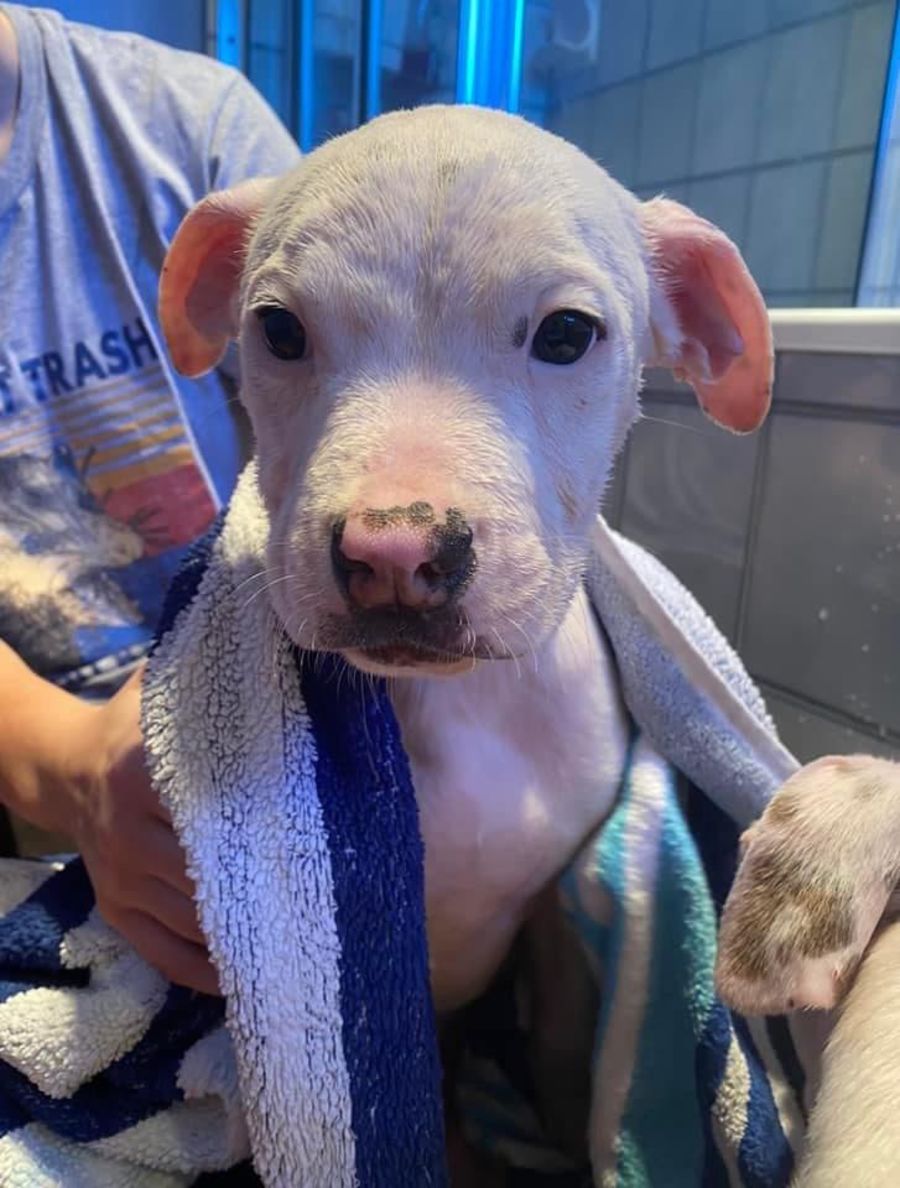 Wolf is a very happy but shy little boy, it takes wolf a bit longer to feel comfortable than his brother but once he knows he’s safe he’s the sweetest little baby who loves to follow you around, He loves other dogs and playing tug of war with his brother and even the larger dogs. He is going to grow to be a big boisterous boy so socialising and puppy school would benefit him greatly.