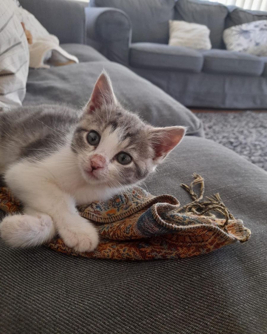 she was rescued from a backyard that she was all alone in. He had no carers or parents. she was found in critical stage with cat flu. Poor little Ollie was so cold and malnourished.