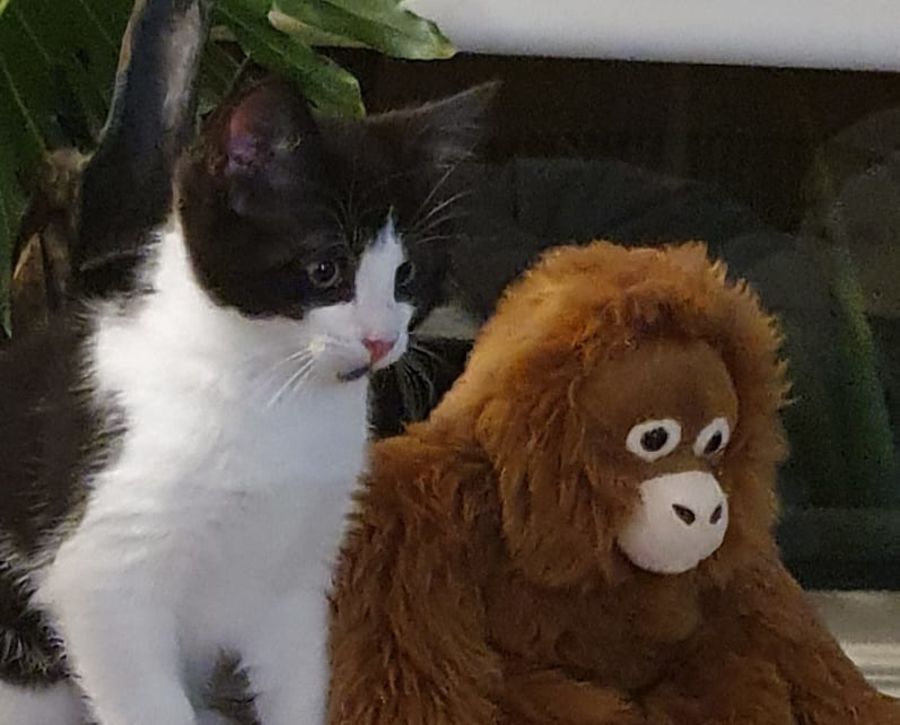 He loves to wrestle and play with his sisters and would love to have another animal sibling in his forever home, but is also happy to spend time alone having a nap or with his people. He loves to explore and jump up on shelves and benches.