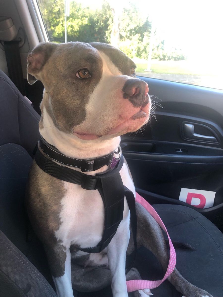 Scout is a 2year old staffy female who came into rescue because her owner had to go into hospital and could no longer care for Scout