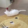 Polar Bear can get spooked by loud noises and reacts like most cats do – “”hide!” But mostly he is a confident kitty who would be fine with older children and a small, cat-friendly dog. He has lots of energy and would be a great playmate for a young confident kitty (as he can be over-enthusiastic at times).