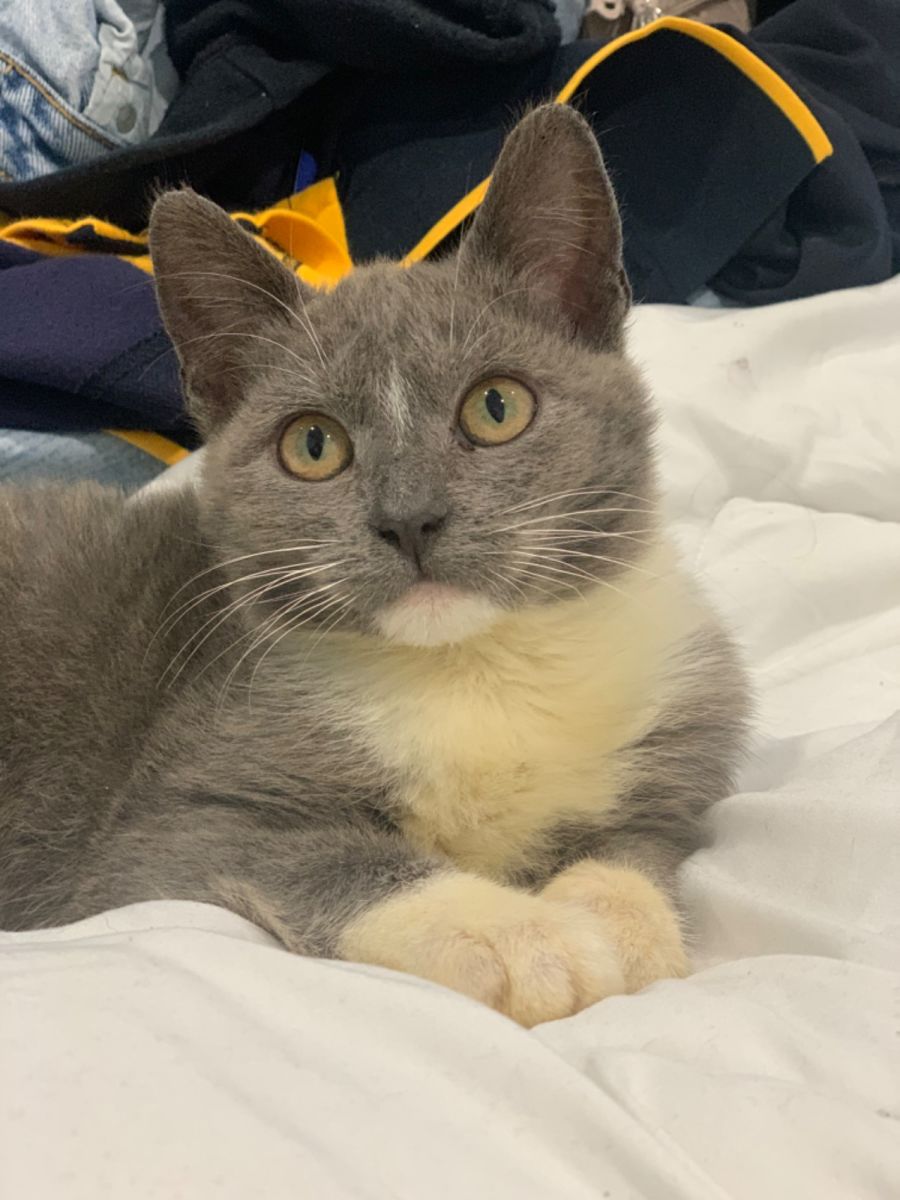 Elsa has the most beautiful green eyes, she looks at you so adoringly. She has a gorgeous blue coat, 4 white socks and a smudge on her nose. Elsa loves to play with her foster sisters and wrestles until they are worn out. She loves to recharge her batteries with a snooze on the bed or at the top of the cat tree. Else seeks out all the sunny spots to warm up on a chilly winter morning and will roll over for a tummy rub.