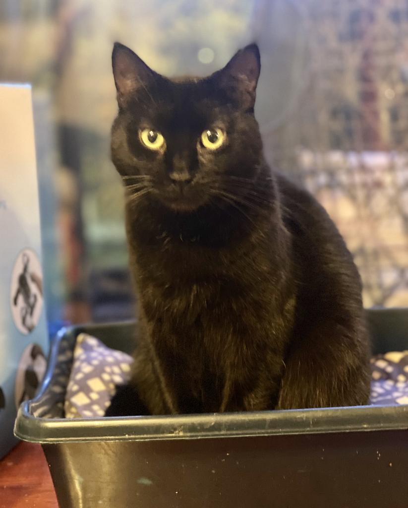Demonica is a petite but plush furred cat goddess (we daren't say stocky diva) with luminous eyes and ear tufts that a wildcat would love. She's very shy and will sit back and observe you until she feels safe, but when she warms up... watch out! You will have biscuits made on you, you'll be asked for food, you'll be supurrrvised everywhere. And when she's tired, she'll settle down in her little bed until you've fallen asleep, then she'll come and sleep on your feet.