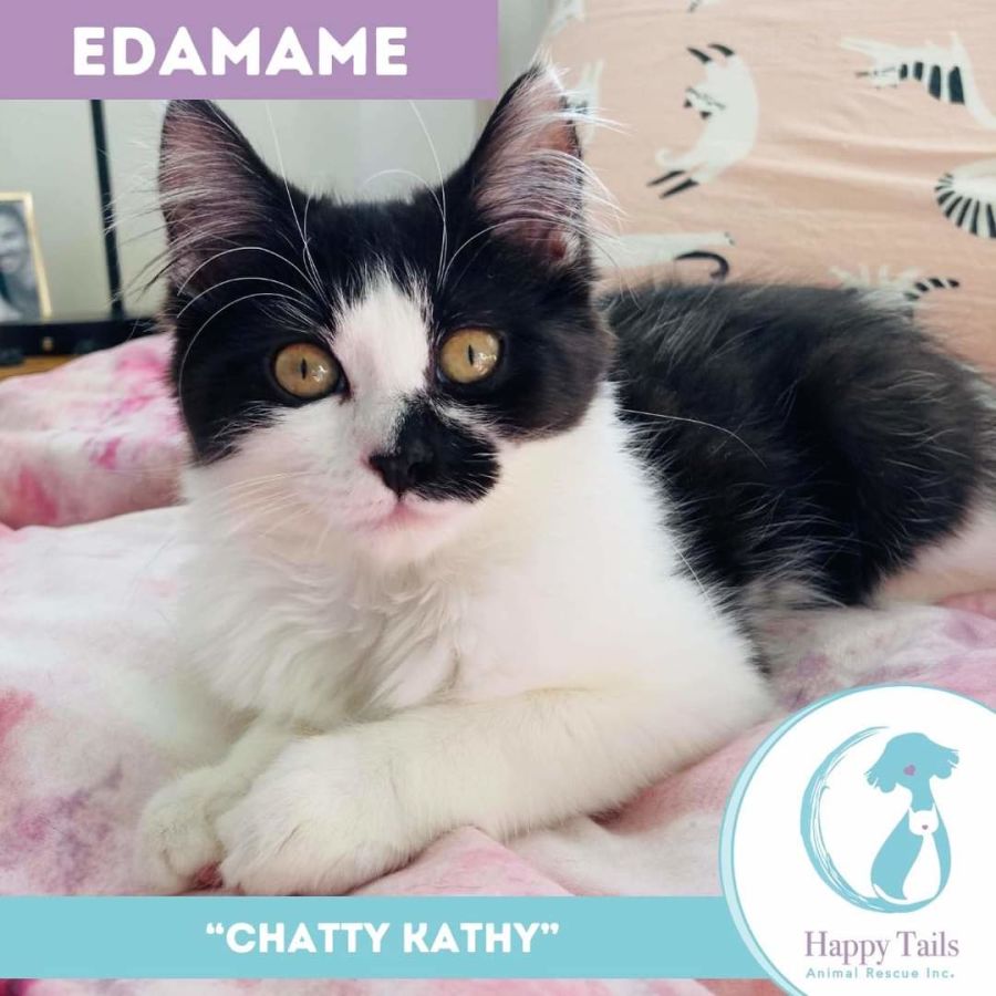Edamame is sweet, cuddly and super playful. She’s great with cats and dogs too! Take her home and you’ll wonder how you ever lived without her!