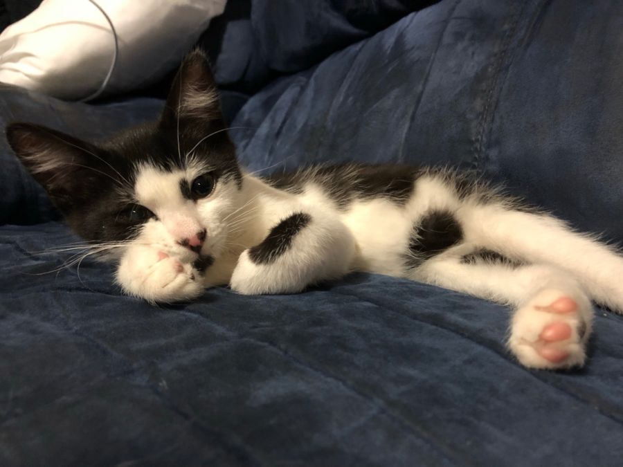 Pipsqueak is a gorgeous soul, that purrs instantly when you touch her. She likes to see what you are up to around the house, and follows you around in case she misses out on something. She doesn’t enjoy the rough play like her brother does and quite often grumbles at him when he is annoying her. She prefers to chill out on the lounge and clean herself, or clean someone else. She has a scar on the outside of her eyeball that will stay there for life, it doesn’t affect her in anyway. She is a clean and happy kitten and loves playing with cat toys.