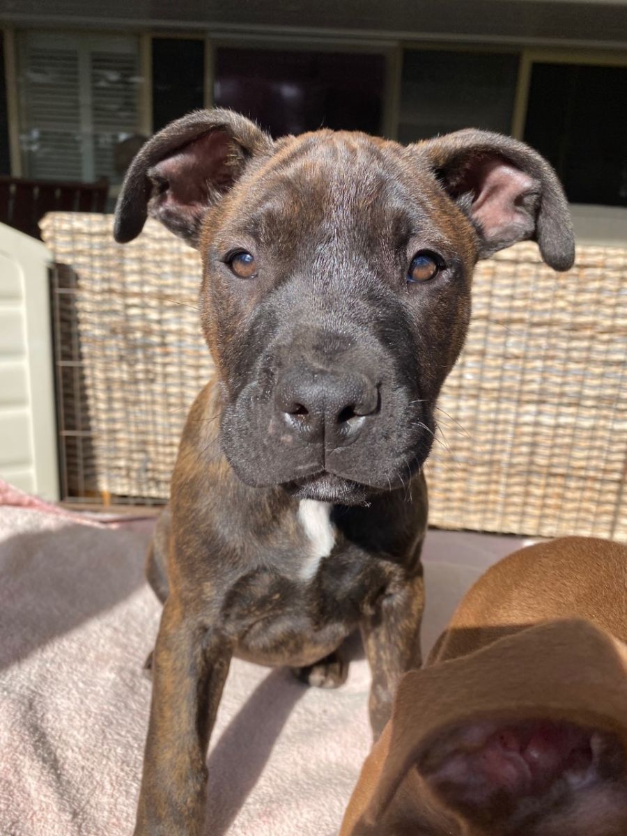 D775 Gemma is an intelligent and affectionate Ridgeback X Staffy pup who will thrive with basic training (and lots of cuddles). She requires regular exercise and, when fully grown, will be a large sized dog.