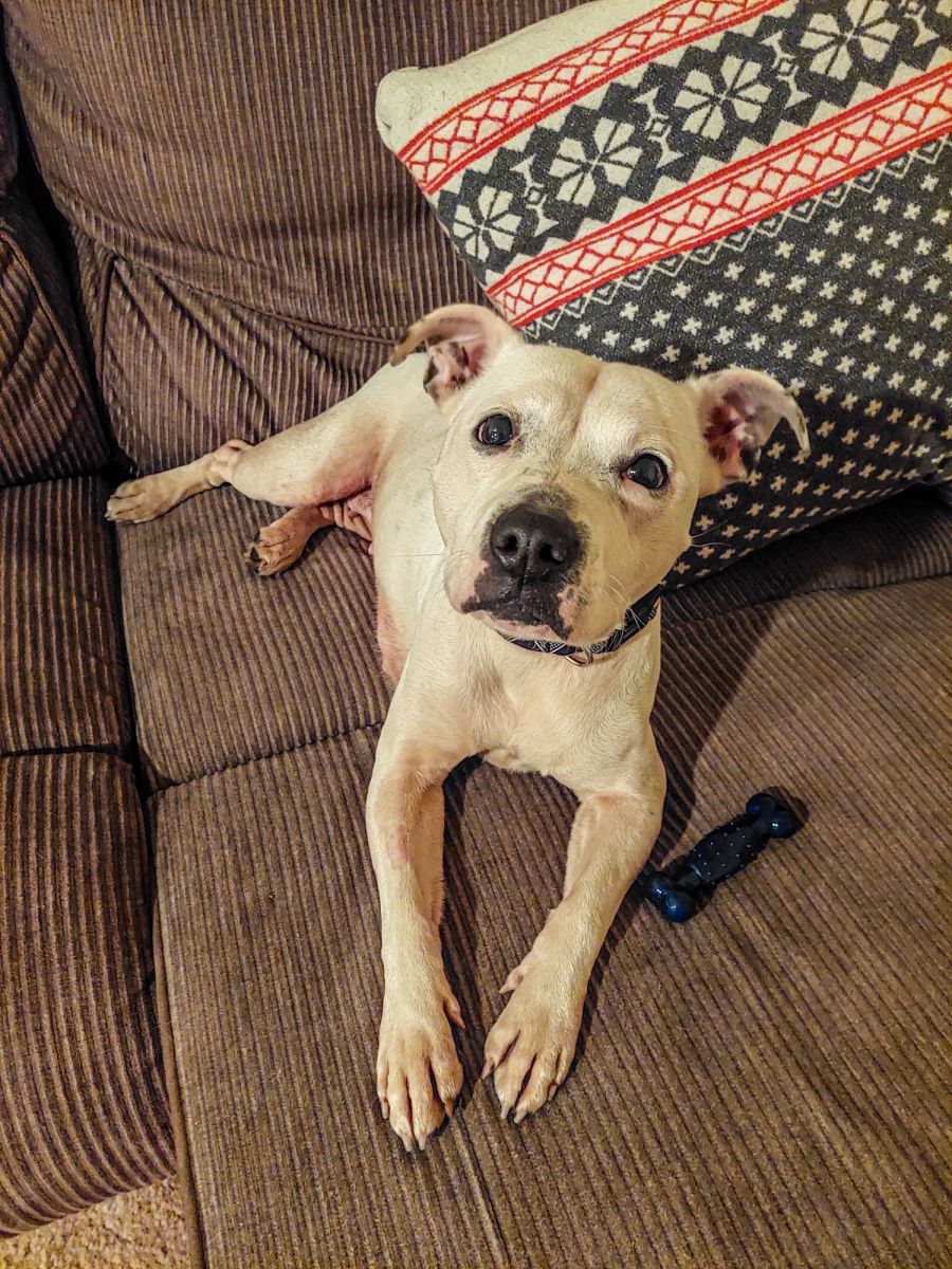 Peggy is super excitable, greeting new people is her favourite job. A real snuggle bug who wants and deserves all the love.