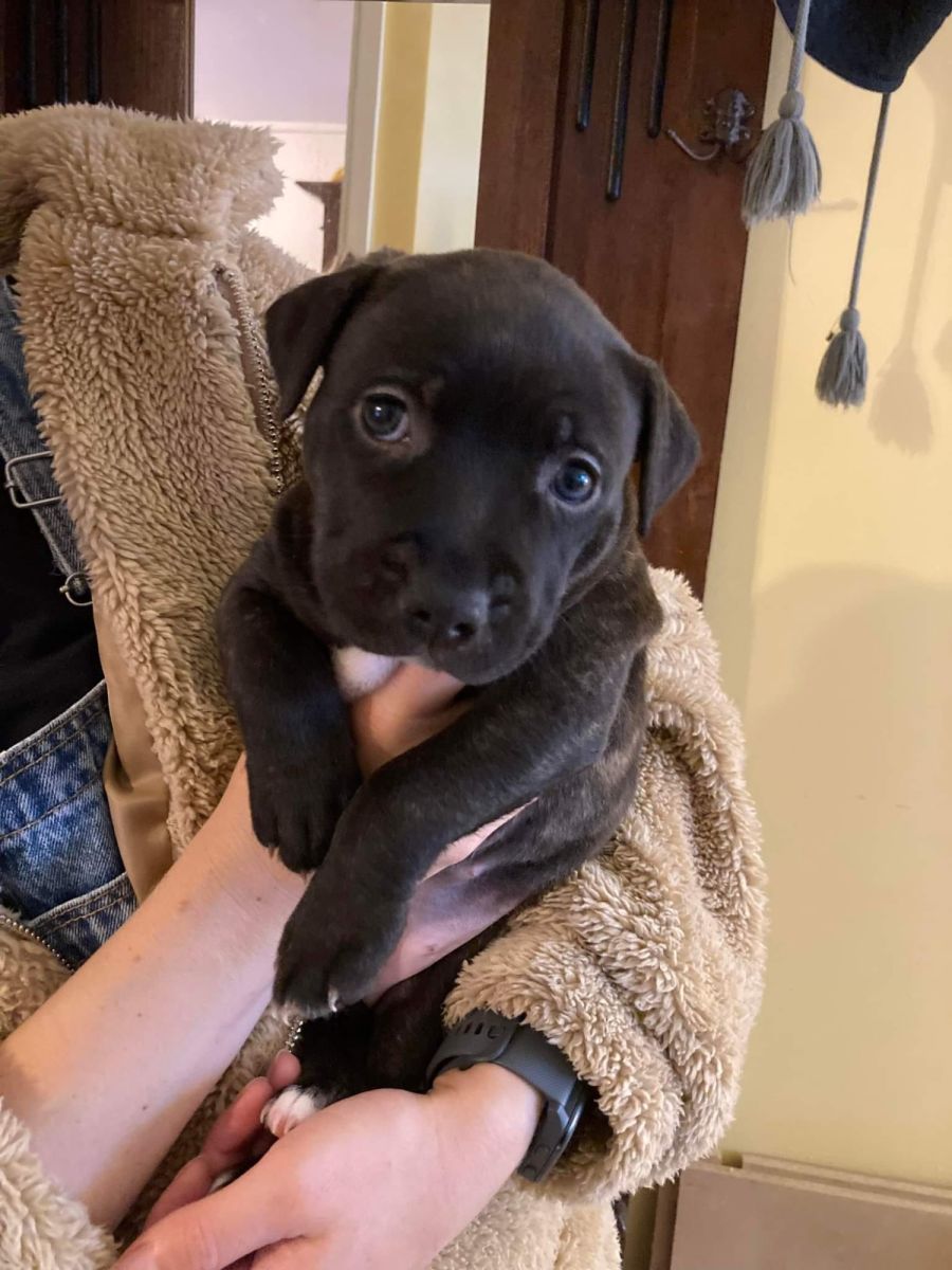 Blossom's Mum is guessed to be a Sharpei X Staffy and her Dad is unknown, so Blossom could grow to a medium or a large size as an adult dog.
