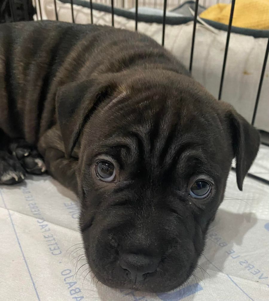 Sydney's Mum is guessed to be a Sharpei X Staffy and her Dad is unknown, so Sydney could grow to a medium or a large size as an adult dog.