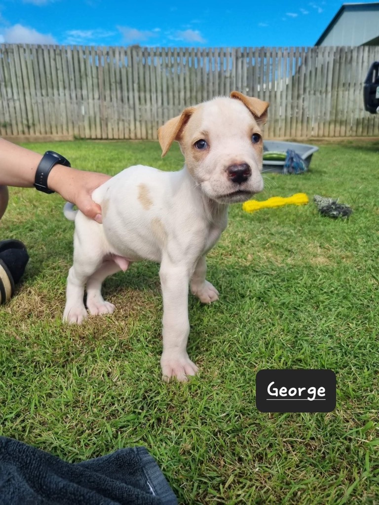 Hello, my name is George. Being a Bull Arab X, I am a going to grow to a decent size so having secure height fences would be a preference along with an energetic home to exercise me regularly. I have a super sweet, gentle nature and my intelligence is already starting to show. I love to play, whether it's with other dogs or children but also enjoy some quiet time with a cuddle. If you let me, I will happily snuggle beside you all day. Although I currently have older foster fursisters to play with and keep me company, provided I receive enough exercise and attention, I could possibly be an only furchild also. My super sweet snuggles will be sure to win your heart so please give the Gladstone PAWS team a call on 0429 127 950 and arrange a time to meet me-