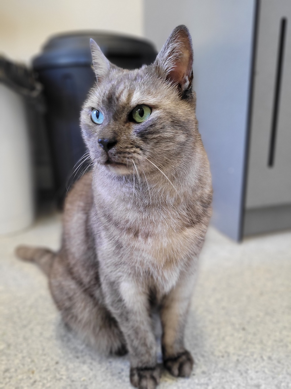 I am a beautiful smoked tabby- my coat is beautiful and exotic as I am a Chinchilla which is a very unique breed. I am an older boy, but I have the heart of a kitten.