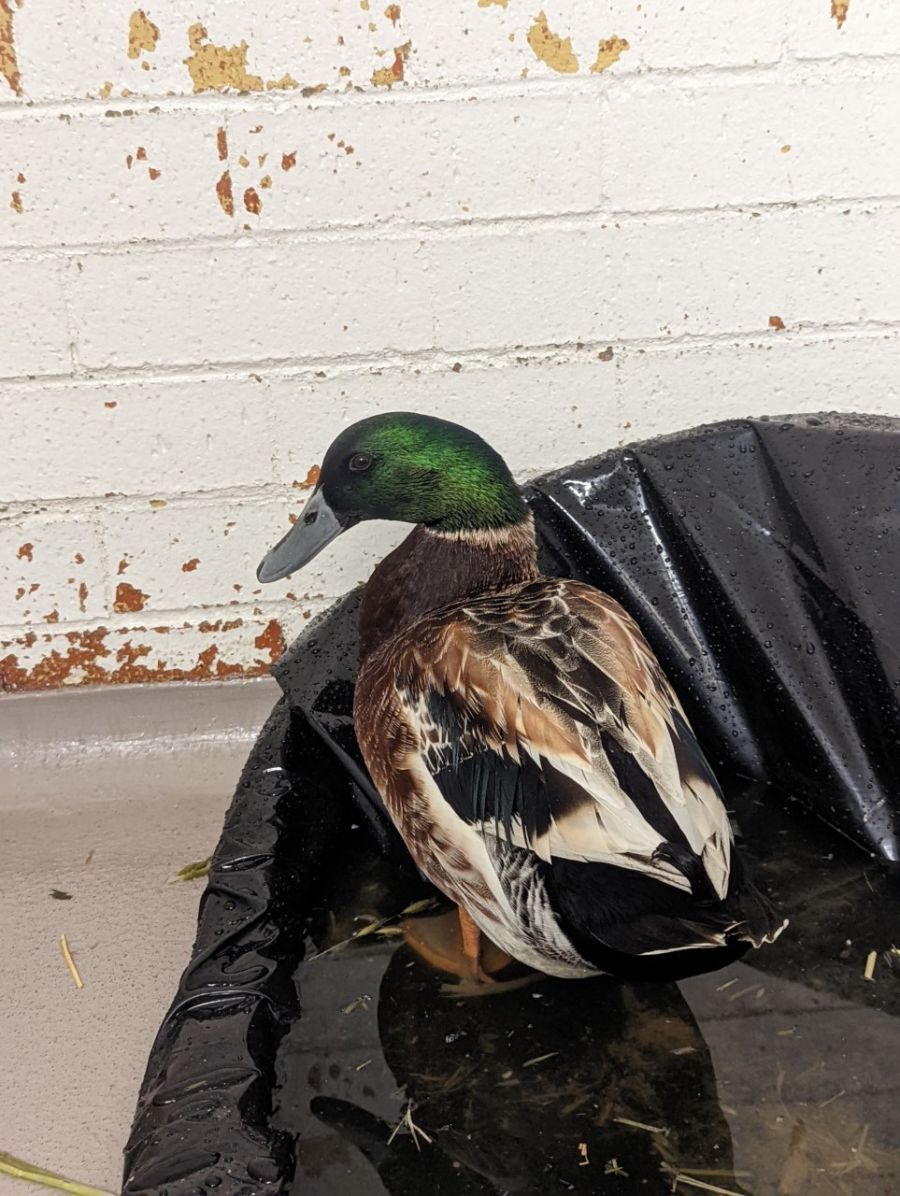 'Elvis' is a very handsome Mallard duck in search of a home! He was brought in as a stray - wondering around where didn't belong!