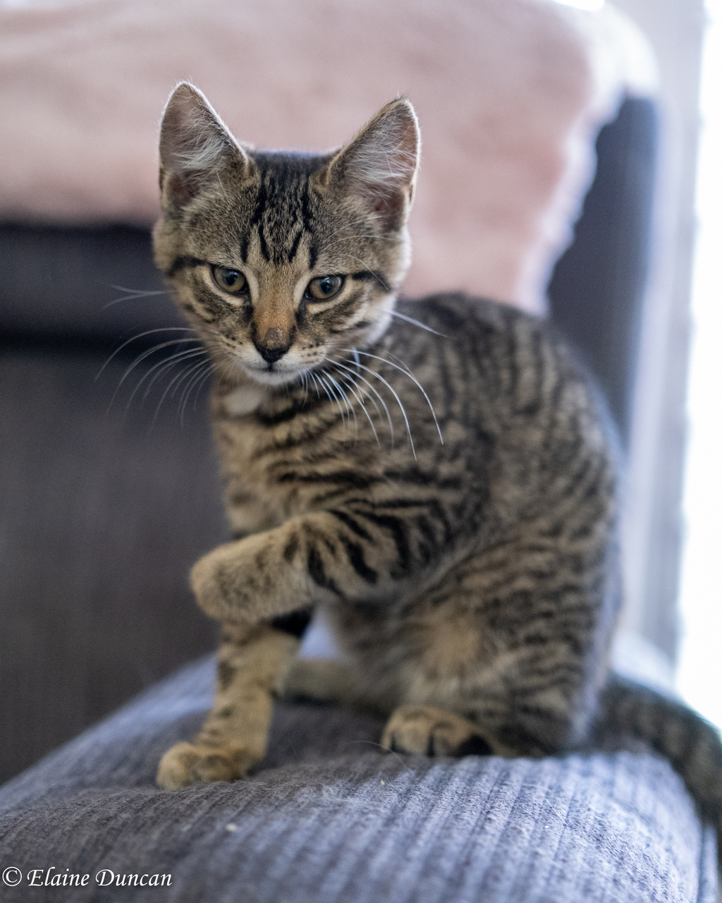 Buddy is a beautiful little tabby boy who is extremely inquisitive, loves to explore and is so full of kitty mischief! He enjoys playing with his siblings and will race down the hallway, diving through the tunnels, chasing his toy mouse or a ball or having friendly fights with his siblings. Buddy has absolutely no fear and endless amounts of energy. When it's time for him to have a nap, he can usually be found curled up in a warm, sunny spot or he is also known to jump onto his foster carer's lap or arms, purring loudly. However, this won't last long before he's up and about with renewed energy, ready to entertain you again with his mischievous antics. You will find Buddy a very fun-loving, little boy who will fill his forever home with so much love and laughter.