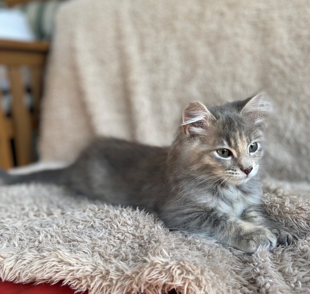 Athena is also known as "Princess Fluffy-butt", obviously due to her beautiful, fuzzy coat. She is very inquisitive by nature and an absolute sweetheart. She is that lovely mix of independent, able to play and entertain herself, while also loving napping on a warm human lap once play and exploration time is over. To win Athena over quickly, it is good to know she will go absolutely crazy for a 'feather on a string' toy! You will know you have succeeded in securing her love when you hear her awesome purr engine rev into gear. Athena's sister, Artemis, is also available for adoption. They are a great pairing and love playing together. If you are looking for a dynamic duo of kitties this could be your perfect match!