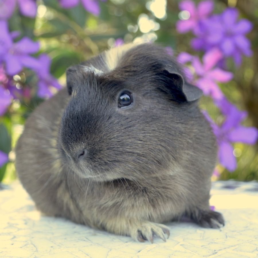 Lucky Charm came to us from the pound with a male, however after spending her gestation period at the shelter, we're happy to say she didn't get pregnant! We've gotten to know her very well over this time, and she's quite a delight. Always sitting with her paws on the food bowl, waiting for her meal to arrive, she doesn't run away when approached, and is very easy to handle. She gets along with any of the guinea pigs she's met, and is a confident girl despite her young age. Lucky Charm is looking for some friends in a new home! She currently shares her enclosure with Uno and Duo.