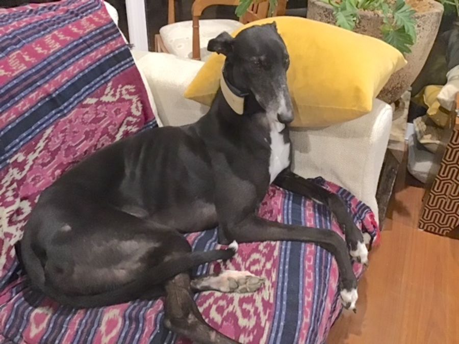 Look at that shiny coat and gorgeous face! Rose is Miss Adaptable; although she lived in kennels all her life as a race dog, she has adapted very quickly to a life of sofa luxury. She’s very gentle and calm and loves the company of people.