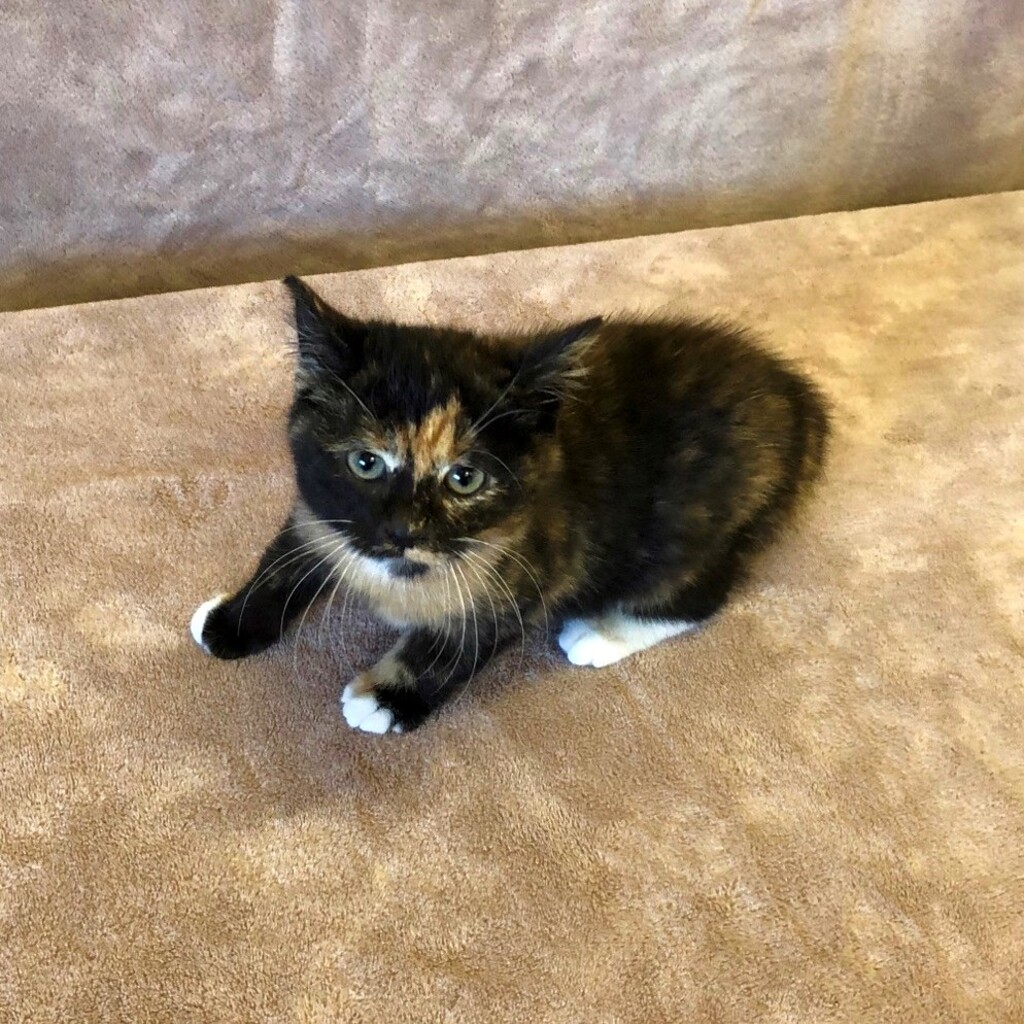 Bubbly Biscuit wasn't a fan of the photo shoot, but don't let that put you off. A typical Tortoiseshell kitten, Biscuit enjoys some alone time to do things her way, as well as, some play time and quiet time.
