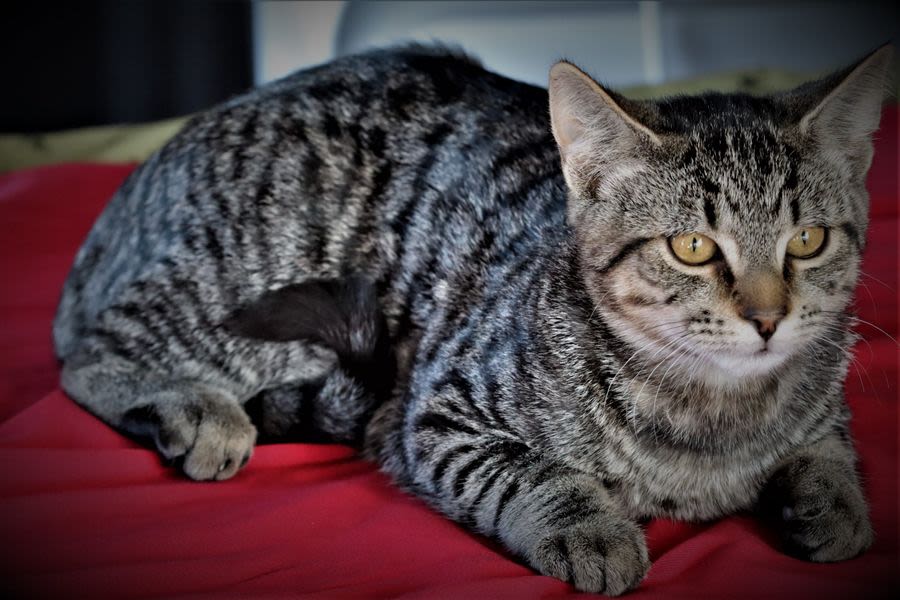 Phoenix is looking for his new forever indoor home. He is approx 4 months old and large for his age. All his vet work complete. He is litter trained, energetic, playful and loves cuddles. He purrs madly when picked and up gets along with other resident young and old cats. He ignores our dog ,plays with toys but generally just loves to loaf around and get cuddles. He has the most alluring tabby coat that is black striped and feels like velvet to touch. He has beautiful soft eyes. Phoenix would love a family that just wants to pat him and where he can just lounge around and be loved.