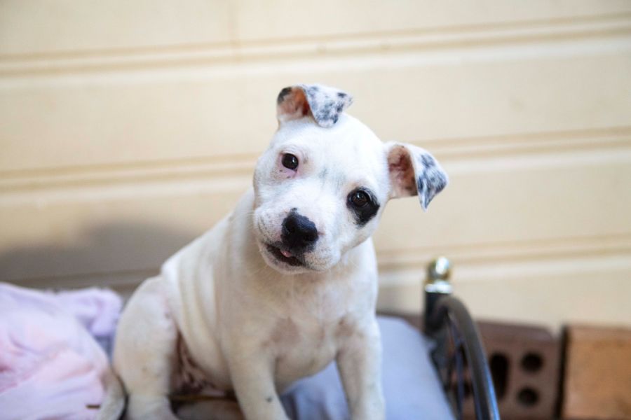 Hi my name is Stella I’m a 10 week old English staffy pup and I am available for adoption. This gorgeous girl is the most friendly pup that just loves to play, wrestle and jump around with her sister. She loves to follow her carer around and absolutely adores her older foster dogs. Stella really loves to be with companions for tumble play time but also loves her alone time to chill with her humans too so her forever home that has another dog for her to snuggle and play with would be great but also a family without another dog that have plenty of time to give her lots of love would be just as fantastic.