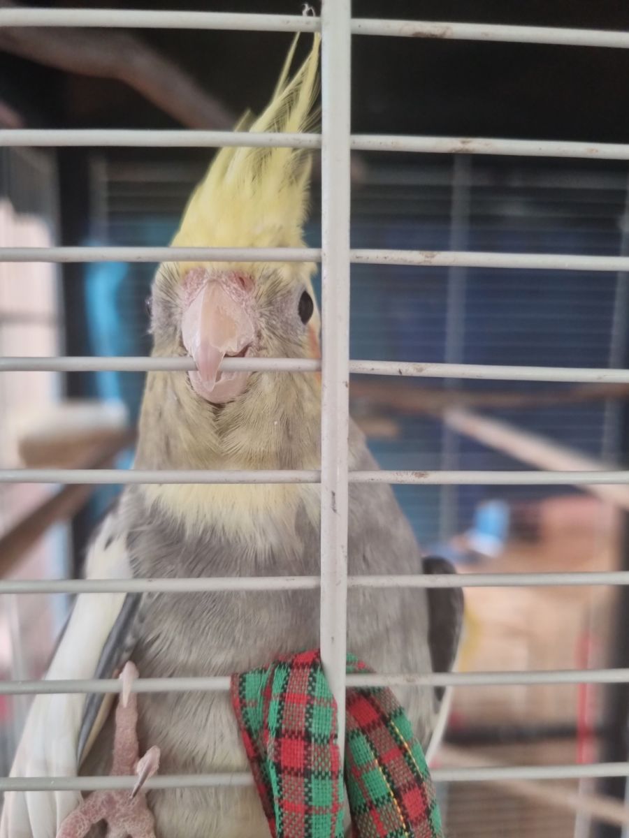 Buddy is a gorgeous older gentleman. He is a guard bird he will let you know if anyone comes to the door and lights to squak to the tv and yell over the news.