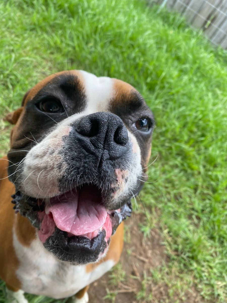 With me he loves to play chase and can get crazy with zoomies if you want to really work him up. If you’re not in the mood, he is happy to sniff about the garden. Like most boxers he has a lot of energy and needs regular walks and play.