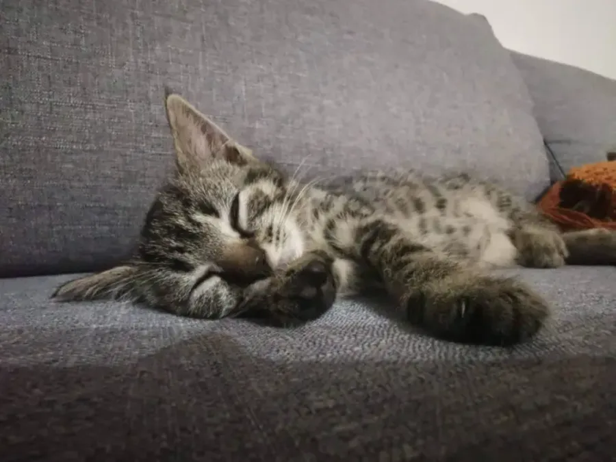 Lottie is a tabby female. She is a gentle kitten that is growing more confident everyday. Lottie is curious and likes to wander the house with her siblings. She likes to perch on the edge of the sofa and gradually move in for a big lap cuddles. She started out the smallest in her family of 5 but has caught up to the others. She loves watching cat games on screens and will tumble and play with whatever toys are going. She especially loves chasing her flipping fish toy and will spend a long time rolling around with it before needing a long nap. Lottie would suit a gently home that encourages her to be trusting. She can be adopted on her own or maybe a duel adoption with one of her siblings.