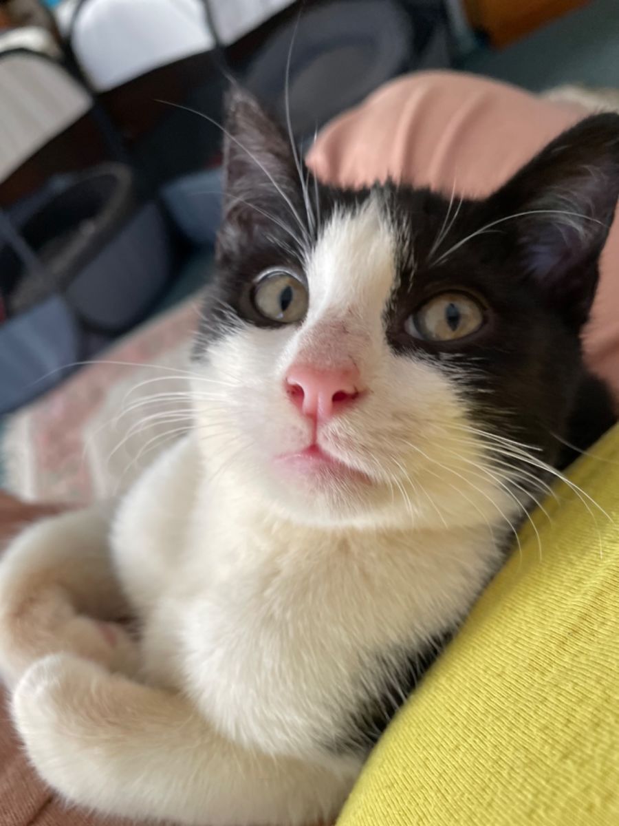 He likes children & would suit a home as a single cat or with an older friendly cat.