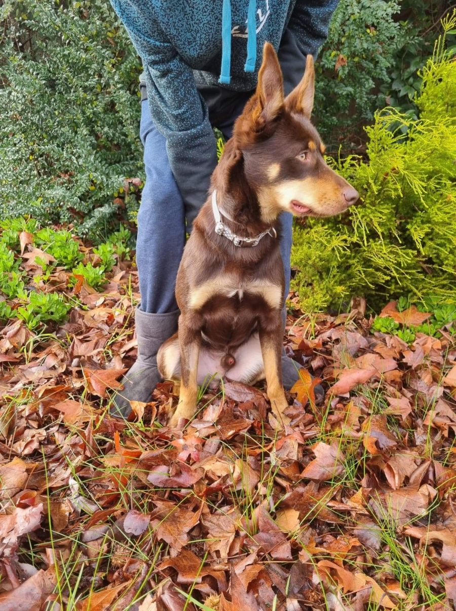 He is beautiful adores us humans was perfect with pooches in the pound just an all round happy pooch.
