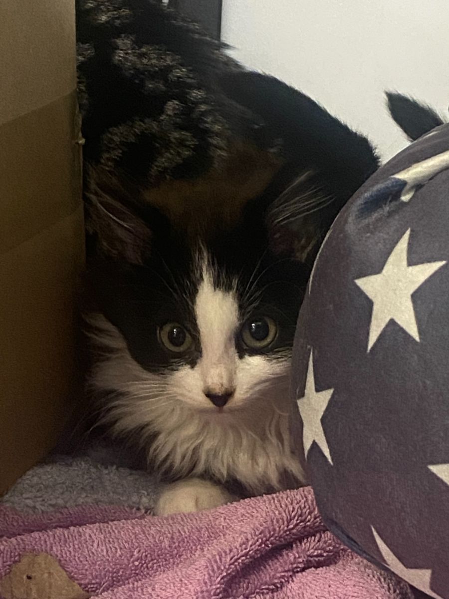 Black fluffy kitty! Super snugly. needs extra love, was brought into clinic for euthanasia, looking for forever home.