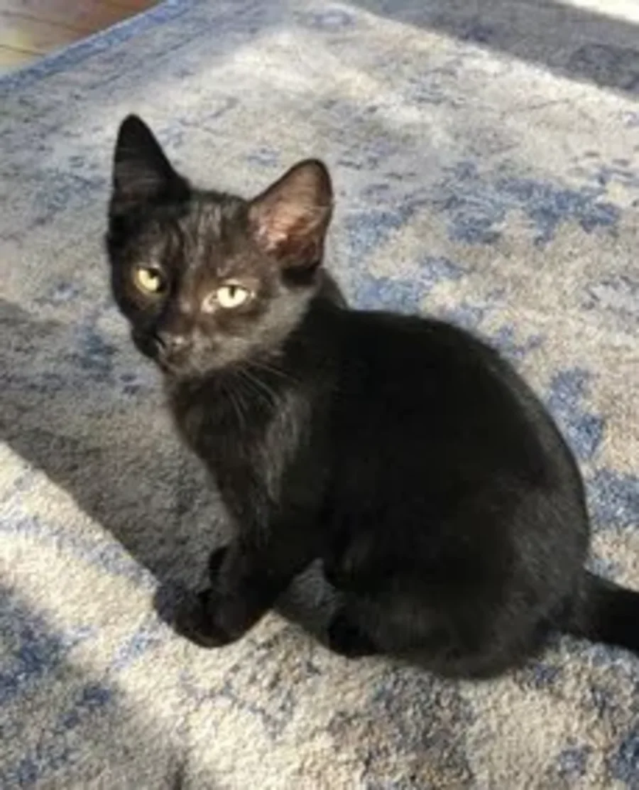 Lennon is a very sweet black kitten who loves being with anyone in his foster family. He will try to get as close as he can – next to them, on their lap or even anywhere on top of them! He is very playful and loves to play with his sister and brothers.