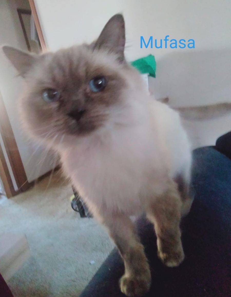 Mufasa is a real smoocher. He loves cuddles and to sleep on your bed. He loves to play with toys.