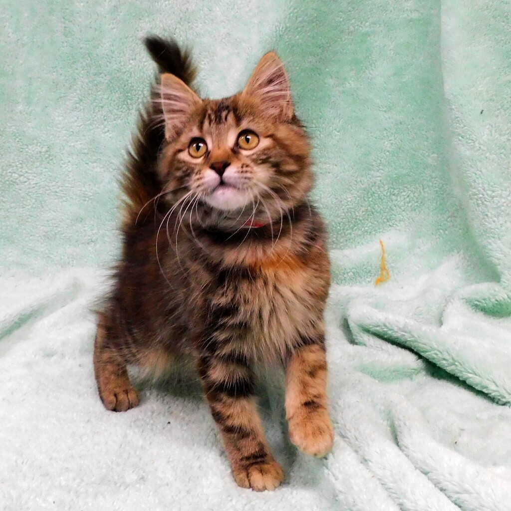 Gorgeous Goldie is a lovely young lady who's unique colourings make her stand out in the crowd. Her medium coat will require regular brushing to make sure it remains tangle free. Being a kitten Goldie enjoys her play time and will settle in to a new life with ease.