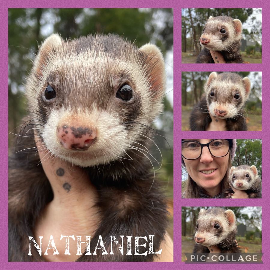 Nathaniel is a very sweet older gentleman ferret. He gets along great with other placid ferrets and is very easy to handle.