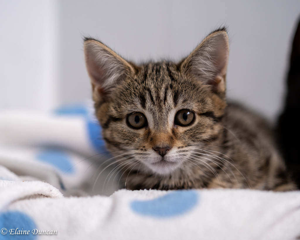 Pipper is a delightful and pretty girl with lovely symmetrical patterns in her coat. She is super sweet and affectionate and will undoubtedly make a really lovely family pet. Pipper tends to follow Niek around, happy to join her on her adventures, however, less likely to go on super big adventures on her own. Pipper is more drawn to napping on human laps and enjoying pats and the doting attention from her foster carers. She also loves a good energetic play session with toys or her siblings, but aways returns to her humans for more snuggles. Pipper is quite unsure about the resident dog and would be better suited to a home with more calm children and chill other pets. She would also make a delightful little 'only-pet', queen of her own domain.