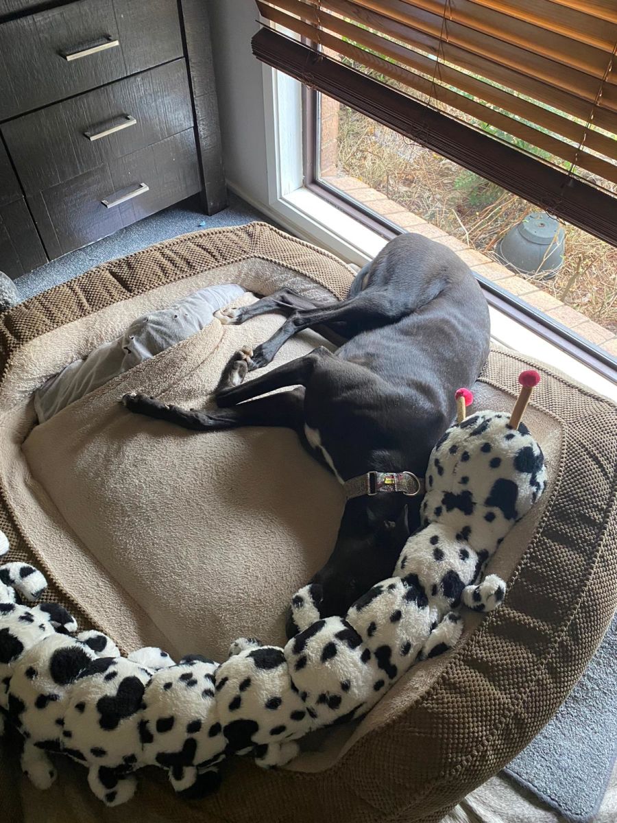 Due to his goofy and high energy nature, Novak is going to need someone who can handle a big chonky playful greyhound who at the start of a walk can pull a little until he wears off a little steam.