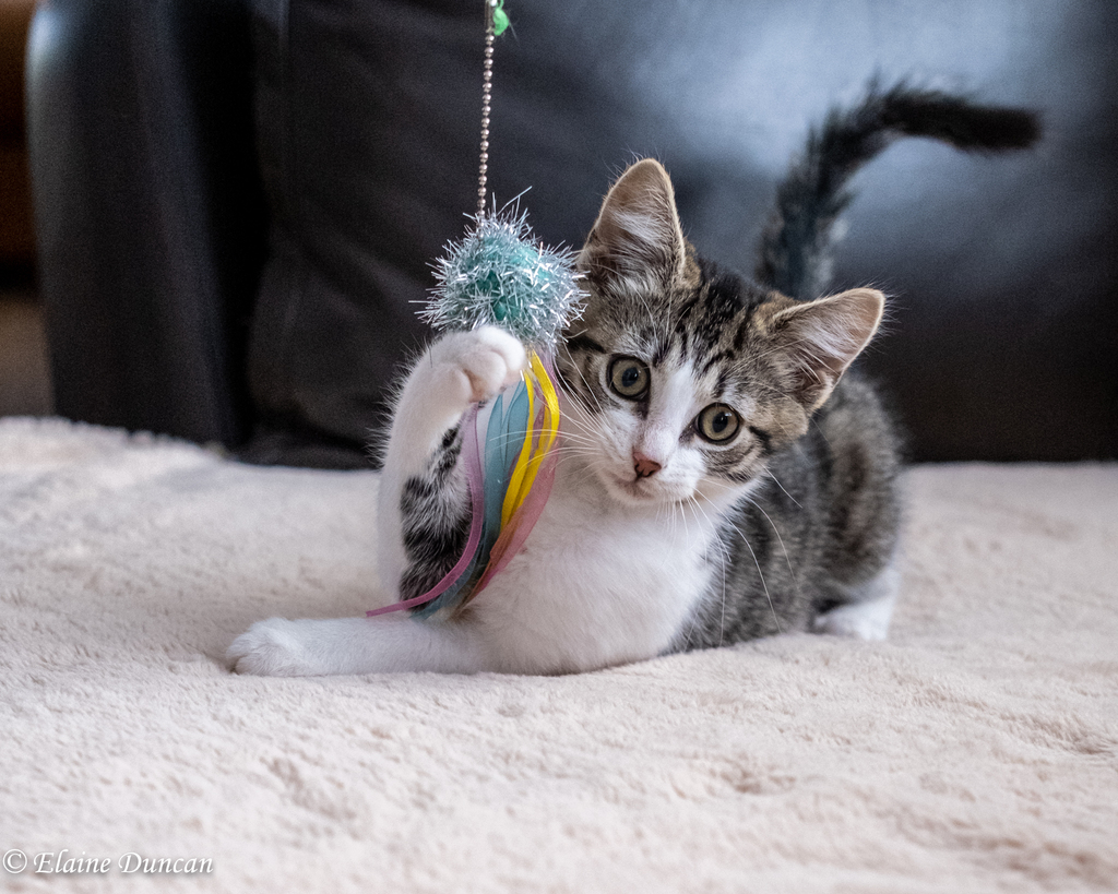 Diego, like his Nickelodeon namesake, is very brave and loves adventures. He is a very confident and outgoing little kitten who is seemingly very happy and satisfied with life. You can tell by his almost constant purr! Diego loves to get attention from his humans. He will just sit and stare at them until they focus solely on him and give him the kisses on his little nose that he knows he deserves. Diego is a fan of belly rubs, however, has a confusing habit of rolling over and over while enjoying his scratches...no one knows why!?! Diego is fun and playful but easily distracted by interesting lights. His best friend is his own reflection, and he is constantly delighted that it copies all his dance moves! Funny little Diego would be absolutely fine as a single kitten or with another cat, just know he will be centre of attention no matter what!