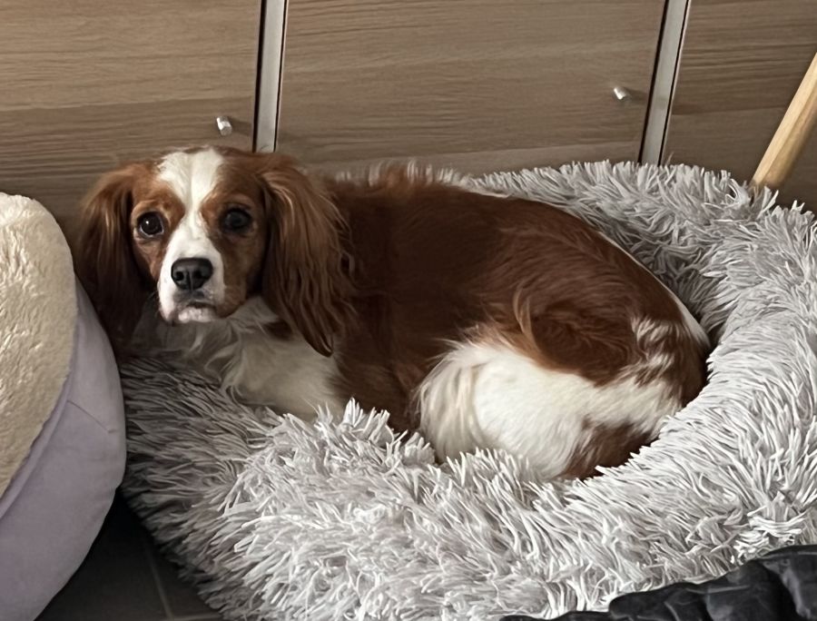 Dolly has been in care for an extended period of time due to being very timid and reserved, she appears to have led a very sheltered life before entering care. She really shows her happy side when she is around other confident dogs with good energy- I would suggest a home with other cavaliers or medium size dogs that are confident. Having at least one other dog is non-negotiable. She has no issue with the resident cat. Dolly was started on Fluoxetine for anxiety almost six months ago, her potential home would need to be willing to work with a vet to monitor her treatment for anxiety. When Dolly is really scared she will wee herself- she has been better with medication but still has room for improvement.