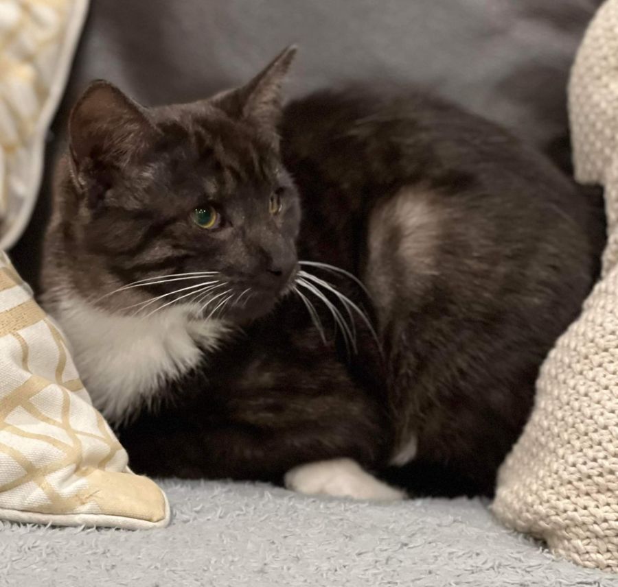 He is a sweet, very cuddly boy that loves company. He takes a few days to come out of his shell.
