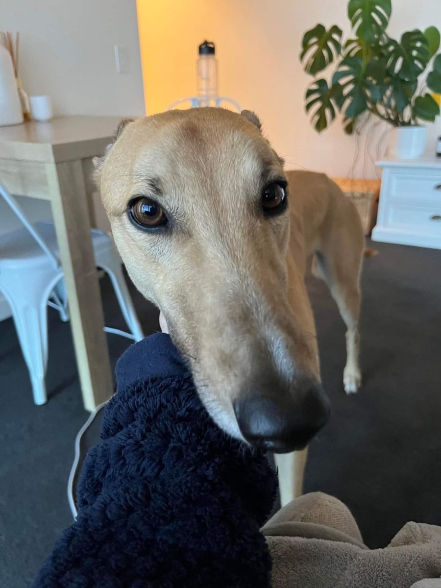 Austin is a stunning 2 year old fawn coloured greyhound with black eyebrows and a beautiful gentle nature.