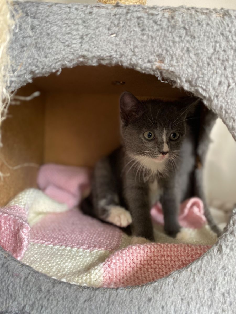 Buttercup is a 9 week old Female Grey & White Domestic Short Hair.
