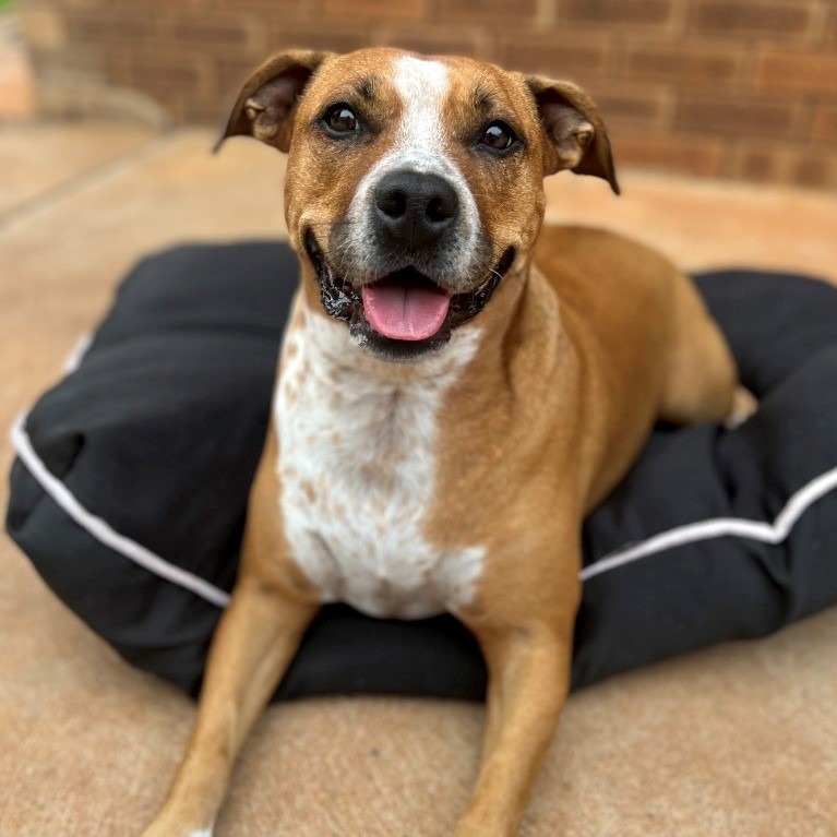 Hi! I'm Delilah, Not a bit like the nasty Biblical woman who had people killed I think that the only way is up for me now and I am excited about my future. I already have a good CV as I love to walk on the lead, with no trouble, we go twice a day so good for your fitness as well. I like other dogs and am in fact submissive with them and not aggressive at all. I sleep through the night and I don't bark all the time. I have some basic commands down pat and I am told I am not too hard on the eyes, so there, I am good looking! I know not to jump on the couch and have good recall as well. I do like to chase a ball in the park though. I like a run as well and just love people. Did I say I was affectionate? A few warm-up moves and I am all yours! As a young dog I am a work in progress and would like someone to be patient with me whilst I learn how to be the dog of your dreams. I love to swim and will jump in the car if its heading for the beach. I am friendly loving and always smiling and looking happy. If you would like me in your life and are patient whilst I learn, apply to adopt today!